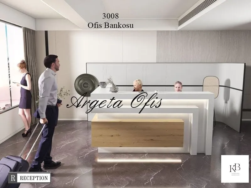 Ürün Tanımı: Profesyonel karşılama alanları için 3008 Ofis Bankoları; ofis bankoları formunda tek kişilikten, iki kişilik planlara uyarlanır.